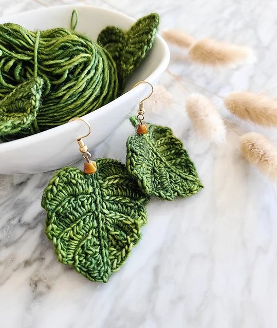 This sweet little Monstera leaf motif is quick to make and full of creative potential, from scrapbuster earrings to large bathmats, and everything in between.
